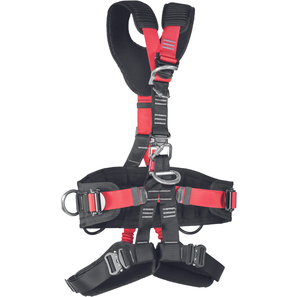 Lanex ELITE Harness for works on rope. Cushioned leg loops and shoulder straps for high comfort of work. Belt and loops for work positioning. Many possibilities of adjustment. Quick-acting buckles for easy donning of the harness. Attachment elements for installation of a chest ascender. EN 361, EN 358, EN 813 sizes: M–XL, XXL Max load: 140 kg : weight 1,7 kg, 1,8 kg Usage: evacuation, rescue operation, wind mils, electro-distribution